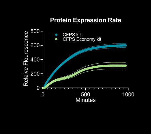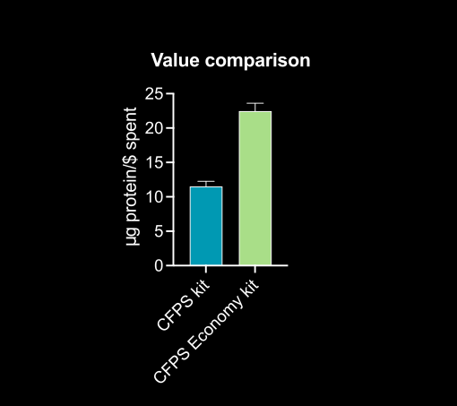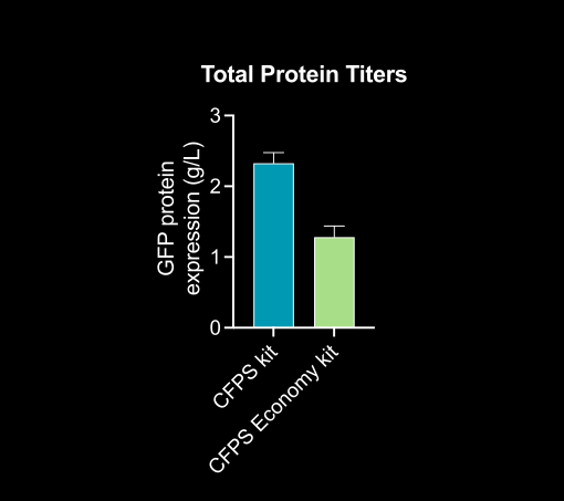 Ginkgo’s standard CFPS kit gives optimal expression, whereas Ginkgo’s CFPS Economy kit gives you more protein for every dollar spent.